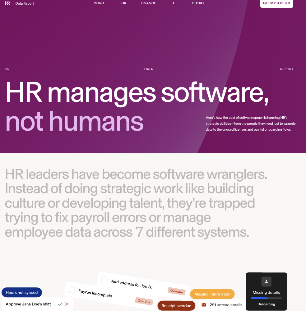Rippling is an all-in-one workforce management tool. Their corporate campaign “Software as a Disservice” aimed to show execs that more software was hurting their business, not helping.